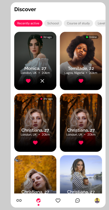 TheCatchMeApp Discovery Page makes it easier than ever for students to explore and connect with potential matches beyond just swiping. This feature allows you to discover people in different ways, ensuring that every interaction feels intentional and relevant.